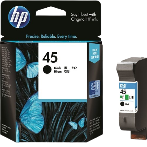 The original HP 45 (51645A) black ink cartridge. Designed to deliver consistent, professional-quality prints at a fraction of the cost, it’s the ideal choice for cost-conscious users who don’t want to compromise on performance.